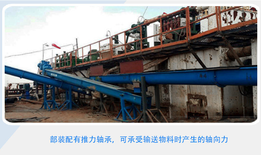 驱动装置:采用摆线针轮轮减速机或轴装式硬齿面齿轮减速机,设计时应尽可能将驱动装置设在出料口端,使螺旋体在运转时处在受拉状态。头部装配有推力轴承,可承受输送物料时产生的轴向力。